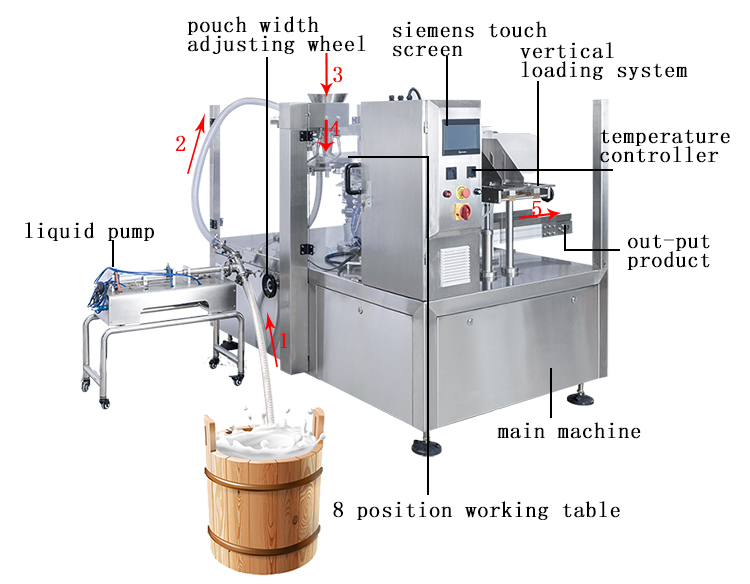 | เน้น | hydraulic drive liquid packaging machine,fully automatic beverage packaging equipment,eight-station food packing machine |